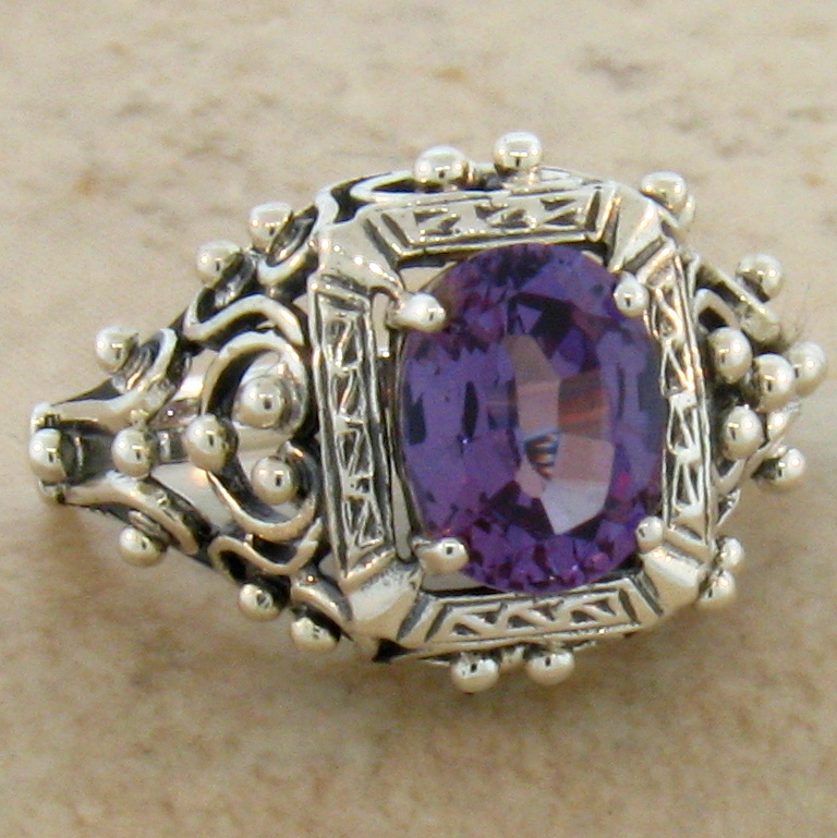 925 STERLING SILVER FILIGREE ANTIQUE STYLE SIMULATED ALEXANDRITE RING #264