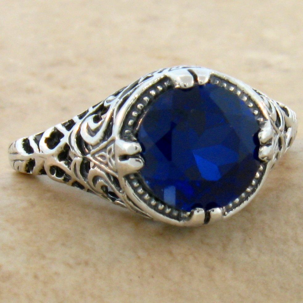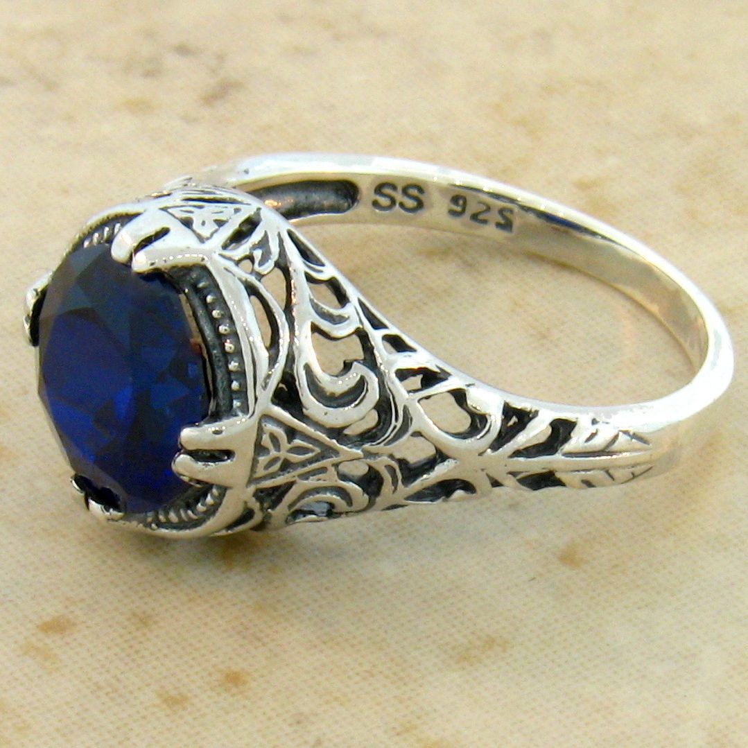 925 STERLING SILVER FILIGREE RING CLASSIC STYLE LAB-CREATED 2.5 CT SAPPHIRE #627